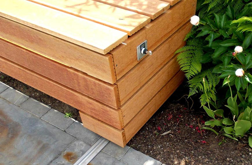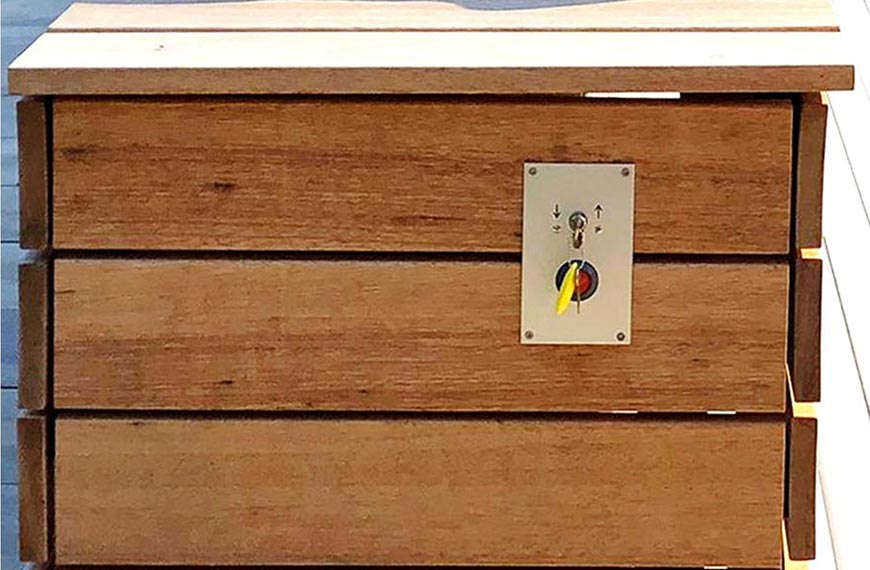 Die Aufrollvorrichtung für diese Abdeckung wird oberhalb der Wasserlinie, vorzugsweise auf der Stirnseite des Schwimmbeckens, installiert und kann auf Wunsch mit oder ohne Sitzbank geliefert werden. Sitzbänke sind wahlweise in PVC oder Holz erhältlich.